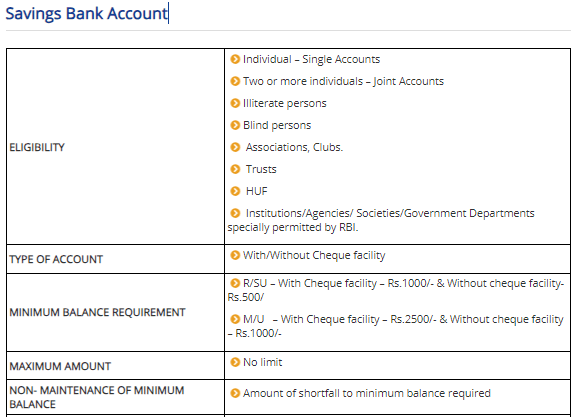| Current Account | शहरी,अर्ध-शहरी, ग्रामीण शाखाएँ | 5000Rs. से 10,000Rs | 100Rs. or More Per Month |