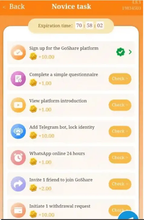 गो शेयर पर हर दिन नए और यूनिक टास्क आते हैं, जिन्हें पूरा करके आप आसानी से पैसे कमा सकते हैं। इसमें सर्वे, सवा[ल-जवाब और छोटे-मोटे काम शामिल होते हैं, जो न केवल आसान हैं, बल्कि अच्छे पैसे भी दे सकते हैं।
