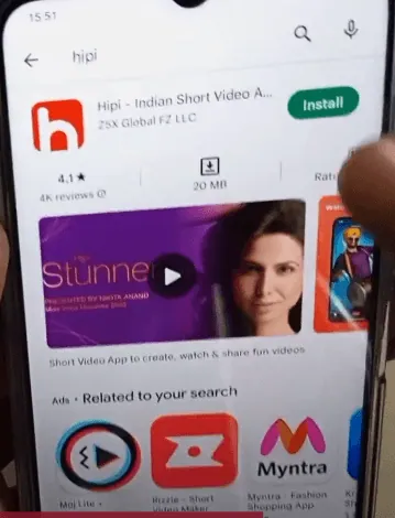 स्टेप 3: सर्च रिजल्ट में दिखाई देने वाले HiPi App पर क्लिक करें।