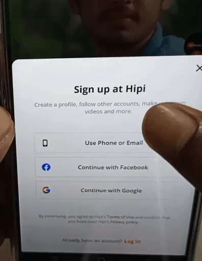 स्टेप 1: HiPi App ओपन करें और स्क्रीन पर दिख रहे “Sign Up” या “Register” बटन पर क्लिक करें।