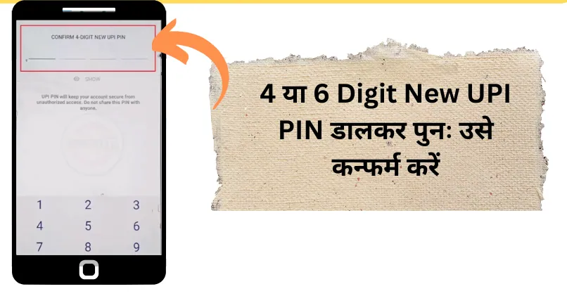 पाँचवे स्टेप्स में आपको अपना Custome UPI PIN डालकर सेट करना हैं। यह पिन आप खुद से बना सकते हैं और कुछ भी रख सकते हैं। बस आपको याद आना चाहिए। क्योंकि इसी पिन की मदद से आप Bank Balance Check, Payment Transfer और मोबाइल/बिल रिचार्ज कर सकते हैं।
