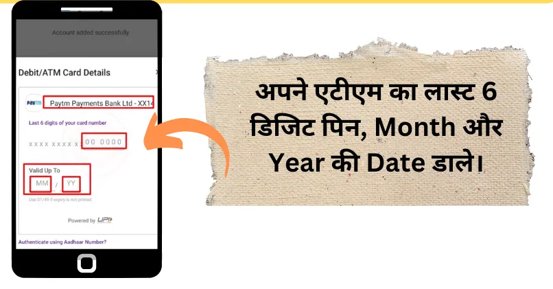 4. एटीएम के लास्ट 6 डिजिट नंबर और एक्सपायरी Date MM/YY डालें।