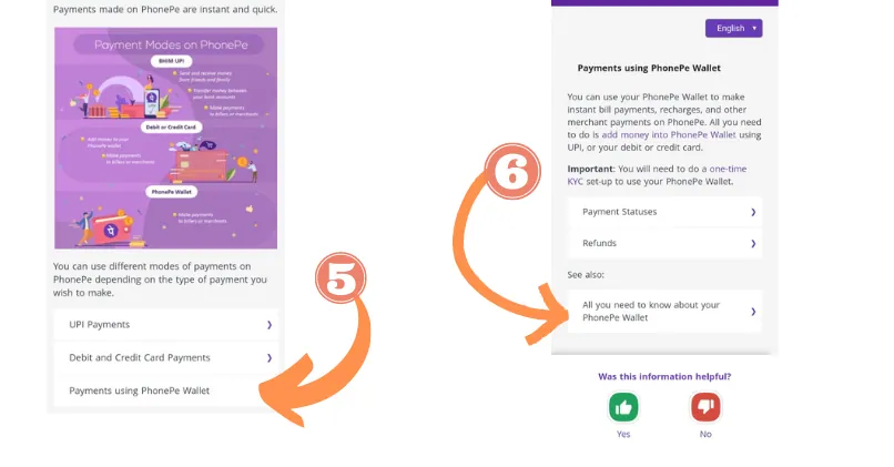 स्टेप 3: निचे की ओर थोड़ा सा स्क्रॉल करने पर “Payments Using PhonePe Wallet” का ऑप्शन दिखाई देगा उसे ओपन करें। उसके बाद “All you need to know about your PhonePe Wallet” वाले ऑप्शन को क्लिक कर ओपन करें।