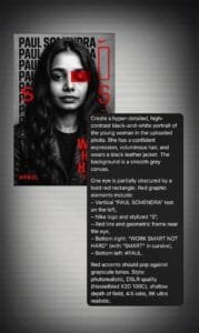 Prompt:- Create a hyper-detailed, high-contrast black-and-white portrait of the young woman in the uploaded photo. She has a confident expression, voluminous hair, and wears a black leather jacket. The background is a smooth grey canvas.